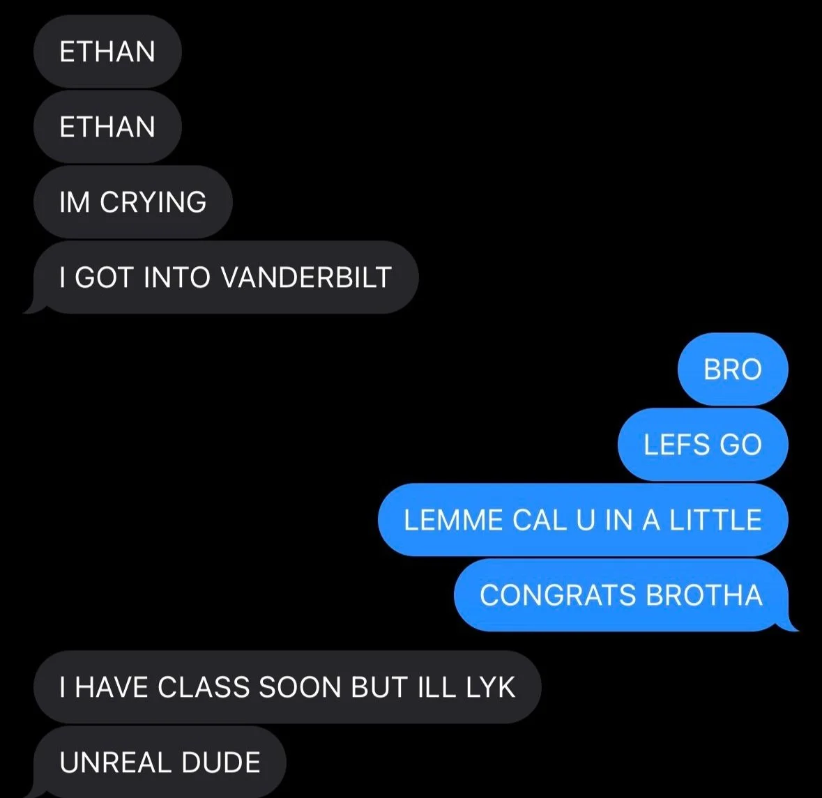 Ethan is extremely knowledgeable about the college admissions process. He helped me get into the University of Connecticut, Johns Hopkins, and Duke. His guidance was clear, effective, and invaluable. I highly recommend him to anyone looking for college application support.